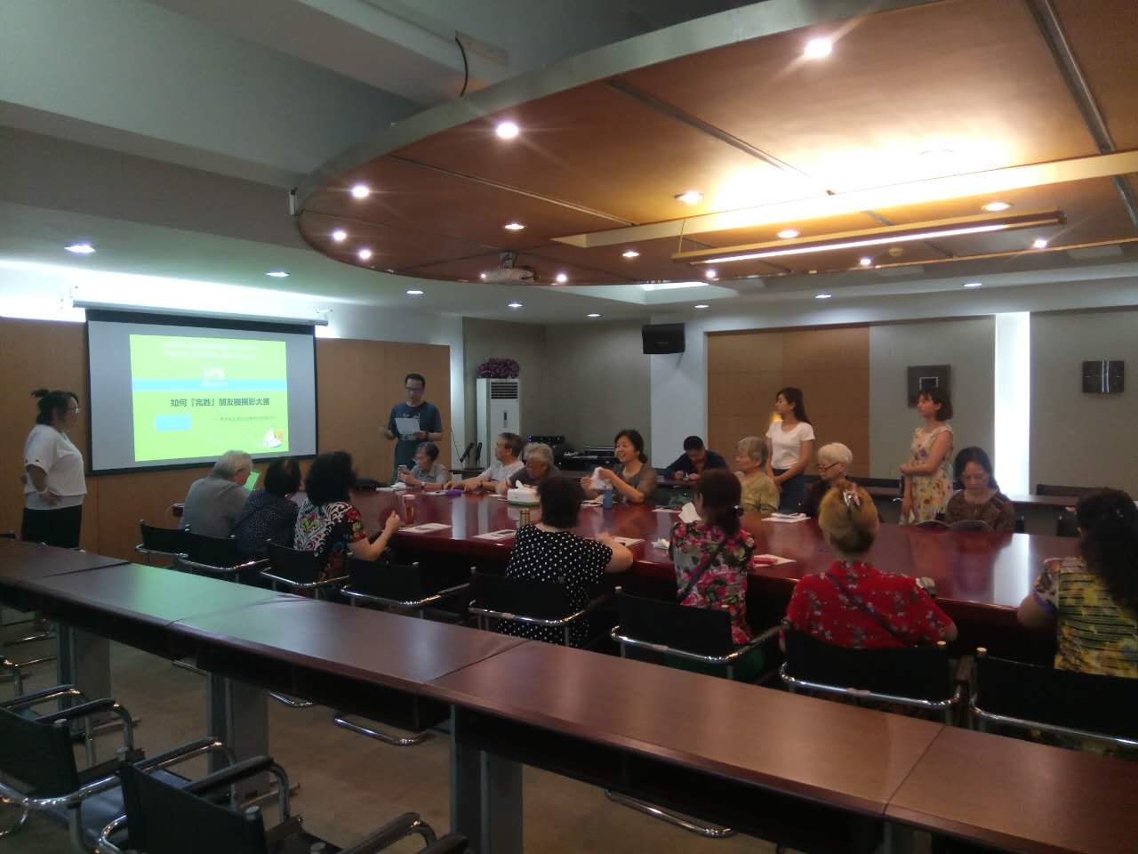 本次培训由康辉旅游集团唐静香老师主讲。她用图文并茂的形式,深入浅出的为老同志们讲解如何利用智能手机的取景、构图、滤镜、景深等拍摄出不逊色于单反相机的大片,老同志们兴趣盎然,纷纷现场动手实践,在培训结束后还围着讲师和工作人员讨论拍摄经验和心得体会。