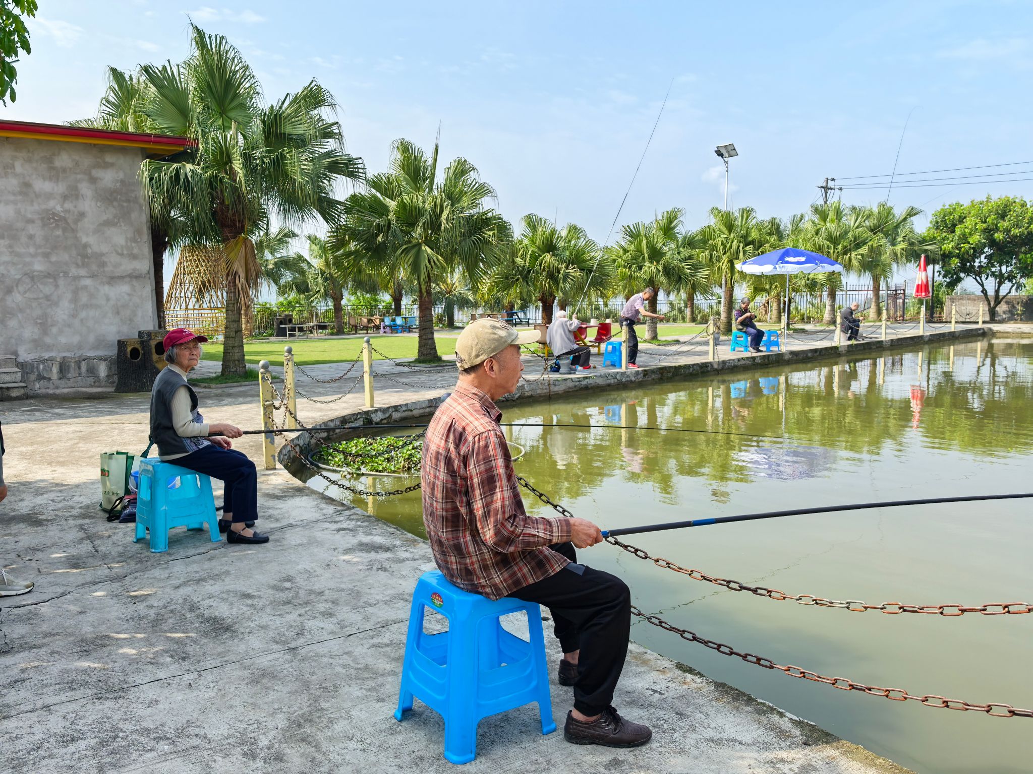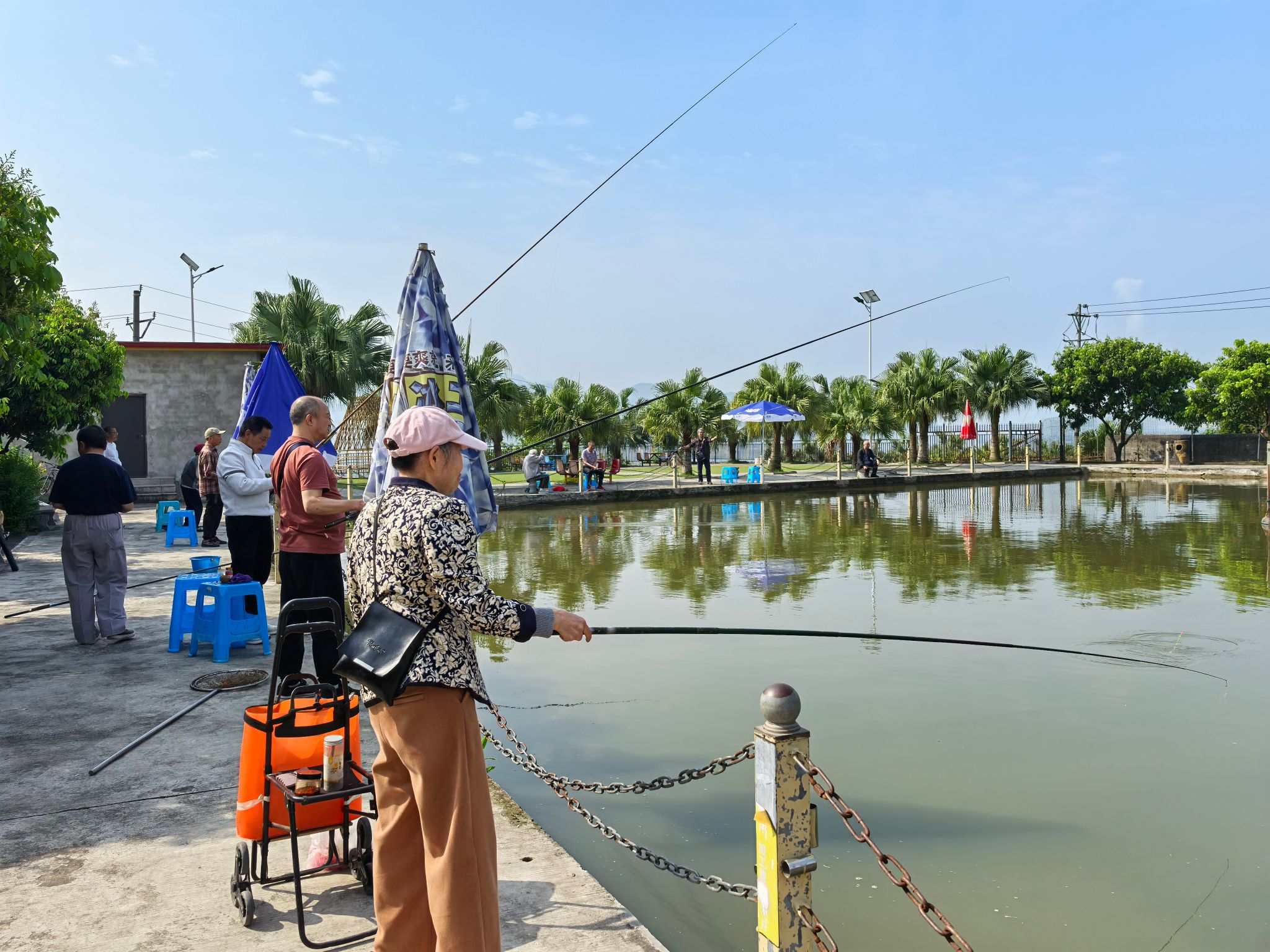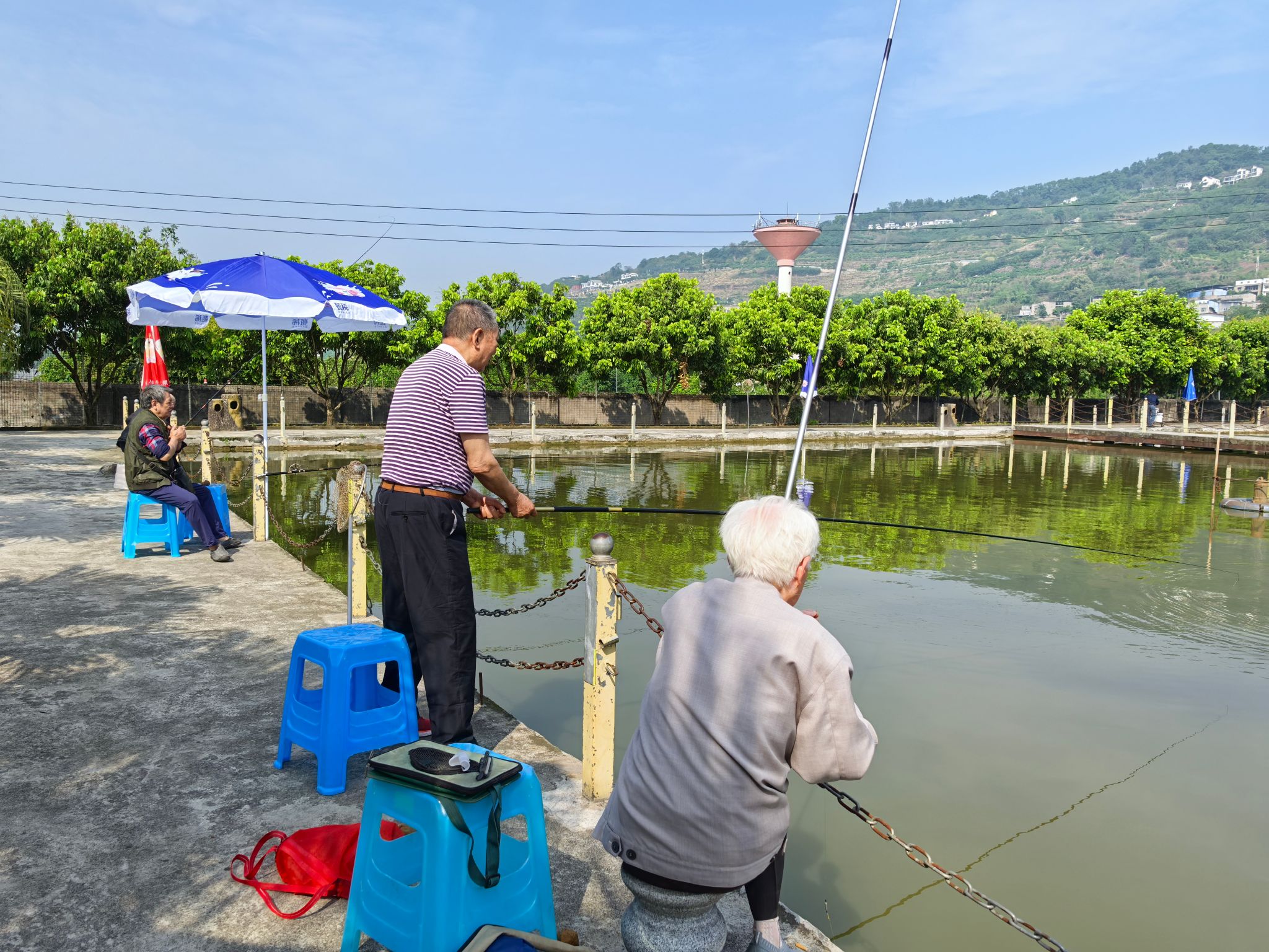 抵达钓鱼基地后,湖面波光粼粼,周边绿树成荫,老同志们迅速投入状态,熟练地挂饵、抛竿、提竿。他们有的静坐岸边,紧盯浮漂,耐心等待鱼儿咬钩;有的轻声交流钓鱼技巧与过往工作经历。随着一条条鱼儿上钩,现场不时传来老同志们的欢声笑语。