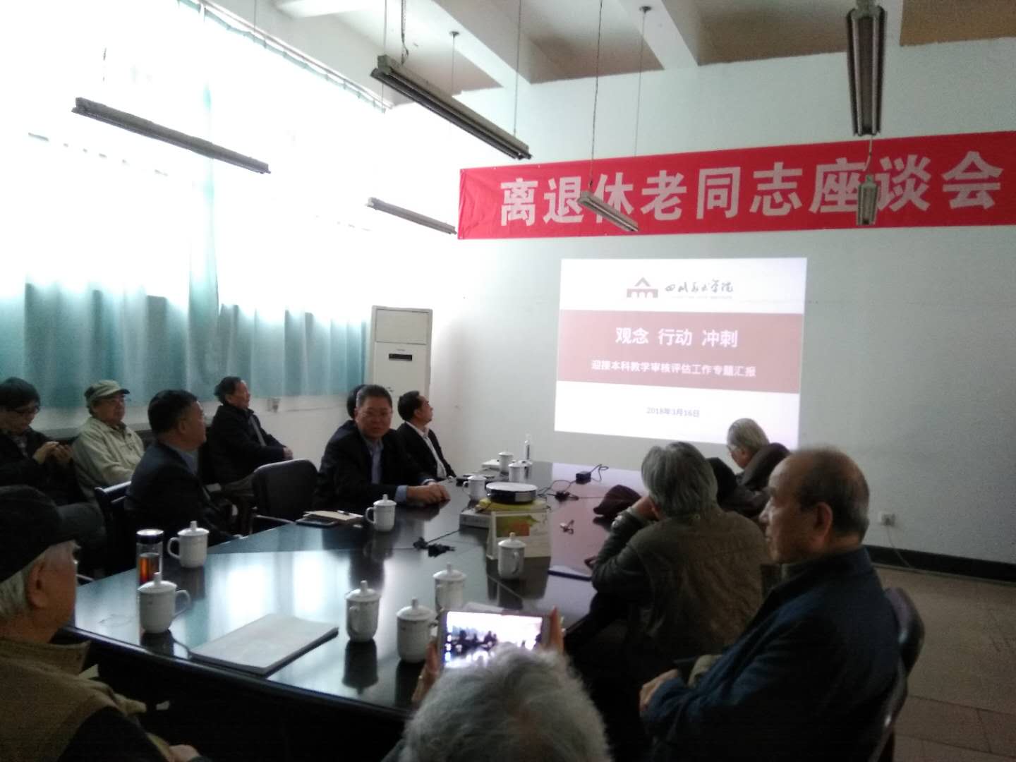 3月16日上午,学校在黄桷坪校区老同志活动中心召开离退休老同志座谈会,学校党委书记黄政、党委副书记左益、纪委书记苟欣文、副校长彭林权以及党政办、教务处、后勤管理处、离退休工作处等部门负责人,就学校近期重点工作与离退休老同志代表进行了座谈。