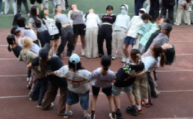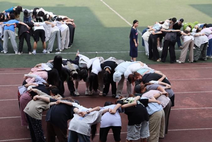 团体辅导活动主要包括“能量圈”和“花开花落”形式的放松身心、“花样握手+学业成功小故事”形式的学业赋能等环节,引导同学们分享学业成功经历、克服难题的应对策略,同学们在活动中领悟到坚持与团结协作的重要性。活动最后,7个专业组成了7列火车,在操场上欢快地穿梭、相遇、相知,欢声笑语回荡在操场的每一个角落。“操场火车穿行”为本次活动画上了圆满的句号。