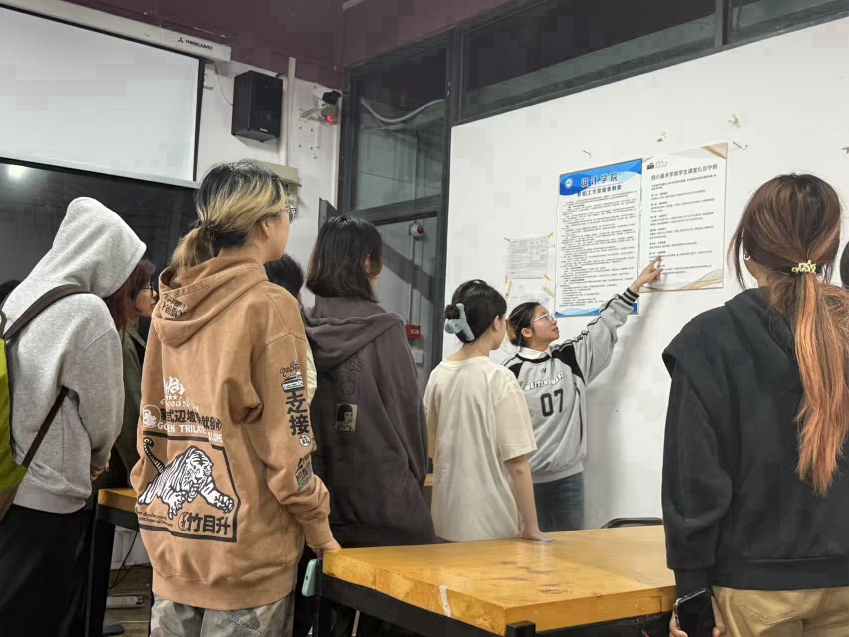 4月16日,24级工美二班在SG502开展本科教育教学审核评估主题团日活动,围绕校规、课堂秩序及评估要点组织理论学习,通过小组研讨、知识竞答深化认知。结合艺术专业特色,以海报、插画创作诠释礼仪规范,强化责任意识。活动后座谈反馈,持续参与教学优化实践,推动教育质量提升,实现“学、议、创、行”多维融合,激发团员知行合一担当。