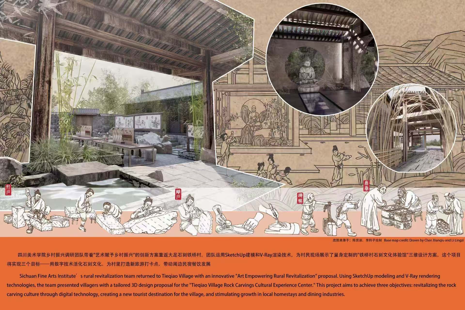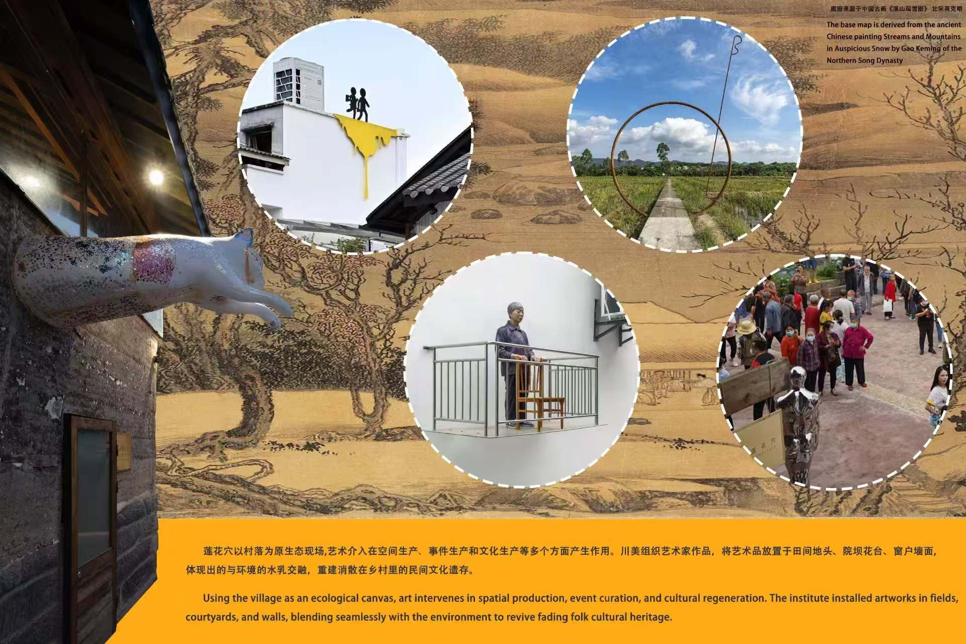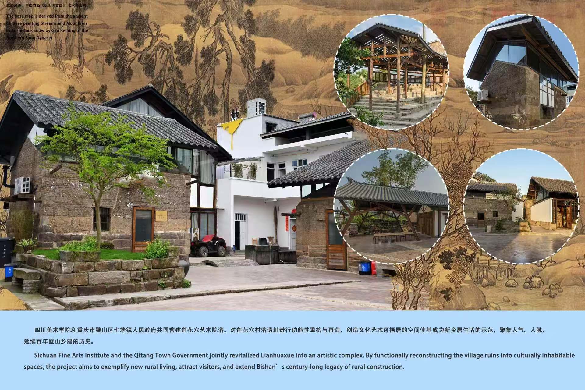 此次“巴渝村景”艺术展通过重庆市璧山区莲花穴、夹江县、大足区、城口县、武隆区、巫溪县6个区县的乡村艺术实践为案例,系统呈现了艺术介入乡村建设、非遗活化传承、文旅融合发展等领域的创新成果,围绕艺术赋能乡村振兴建设经验互鉴,持续推进中国西部多民族地区山地类型的乡村振兴、非物质文化遗产传承活化等领域的海外传播与学术交流。