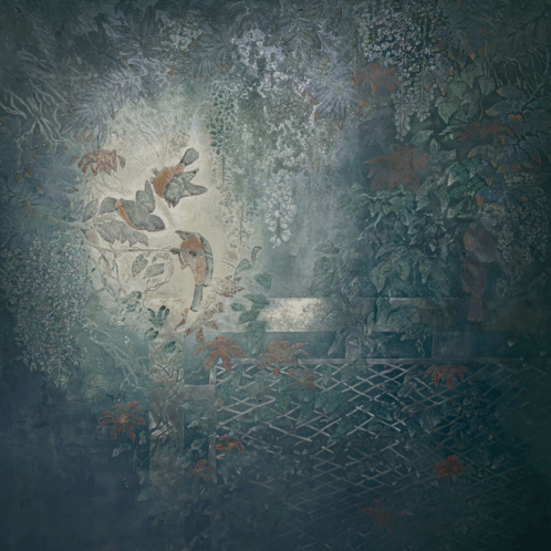 吴林远《云萝映簧语》80cm×80cm木板漆画