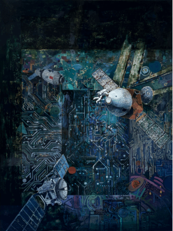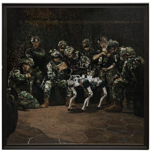 伍栋坤《科技强军之三》180cm×180cm 木板漆画