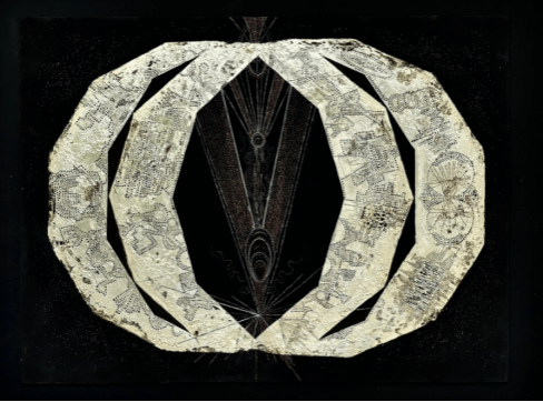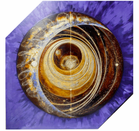 何逸云《坠入宇宙环形叙事诗》122cm×122cm 大漆、金属粉