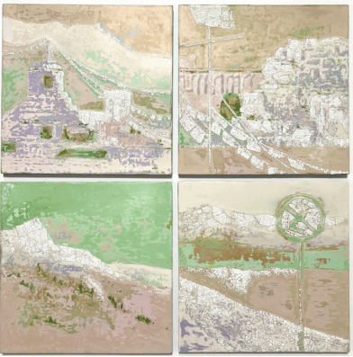 张斯昂《忆象·空间》80×80cm 4张 大漆、灰料
