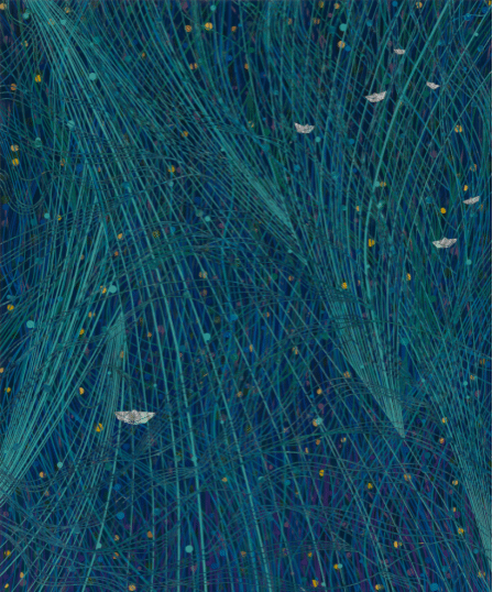 张佳俊《共乘海浪之上》100cm×120cm大漆、螺钿