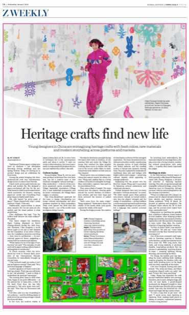 近日,《中国日报》国际版(China Daily)报道了 设计学院王玺副教授及其团队的设计成果《多彩贵州·活力四射——村超、村BA文化形象设计》 ,赞誉团队为“有温度的非遗传播大使”。报道认为,团队的设计不仅精准捕捉了乡村体育盛事的激情,更深刻传递了中华民族传统文化的温情与厚度 。这不仅是对团队设计作品的认可,更是对 长期坚持扎根中国大地、服务社会发展的艺术实践的高度肯定。