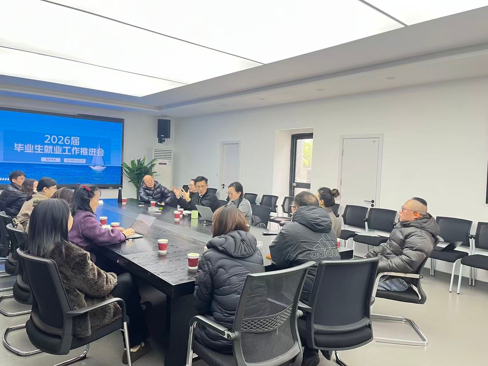 就业是最大的民生,更是检验人才培养质量的核心标尺。为深入贯彻落实党中央“稳就业、保民生”决策部署以及2026届全国普通高校毕业生就业创业工作会议精神,抢抓寒假及春季就业关键窗口期,切实提升毕业生就业质量,1月27日下午,设计学院在SD202会议室召开2026届毕业生就业工作推进会。学院领导班子、党委委员、各系主任及毕业班辅导员参会,会议由学院党委副书记杨红主持。