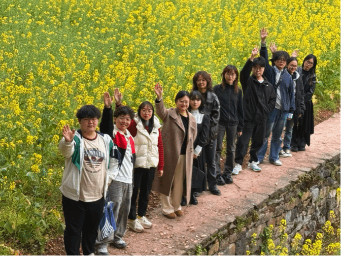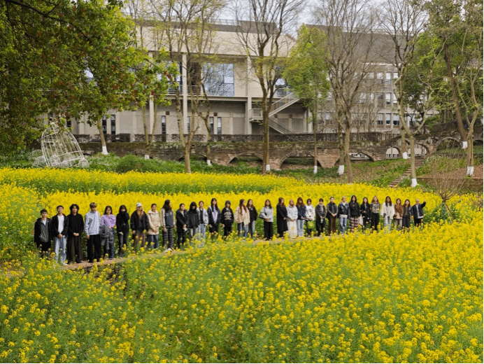 近日,设计学院别出心裁,将新学期的班级建设与校园春景深度融合,组织本科生、研究生共85个班级,把“开学第一课”开在了川美校园的春光里。惠风和畅,在油菜花铺就金毯,梨花、李花缀满枝头,桃花与樱花交织如霞,迎春花点缀其间的校园春景中,师生们围坐畅谈,共话学期规划,也在最富生命力的场景中,用创意合影定格新学期的美好开端。