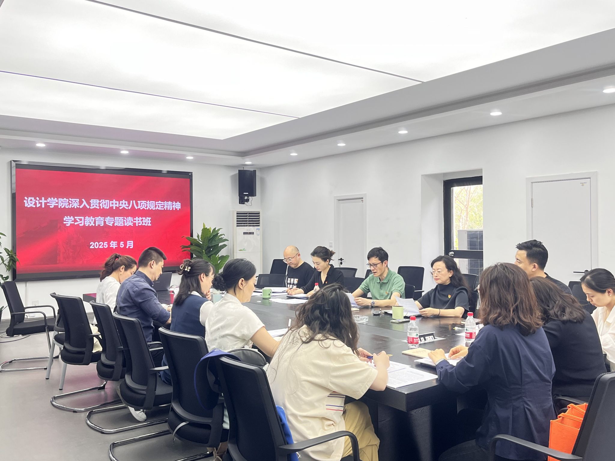 5月14日下午,设计学院举办深入贯彻中央八项规定精神学习教育专题读书班开班暨第一次专题学习活动。学院领导班子成员、党委委员、纪委委员、支部书记参会,党委书记陈勇主持会议并作开班动员。会上,参会人员集中学习了《中央八项规定》及其实施细则、市委关于中央八项规定精神的相关文件、党的十八大以来深入贯彻中央八项规定精神的成效和经验、《习近平关于加强党的作风建设论述摘编》。陈勇、杨红、蒋金辰、骆玉平等同志紧扣会议主题,...