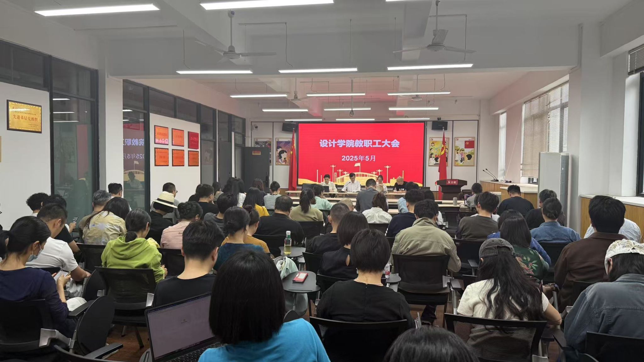 5月7日下午,设计学院在G402召开全体教职工大会暨政治理论学习会,学院领导班子出席会议,全体教职工参加会议。会议由党委书记陈勇主持。会上,副院长骆玉平组织学习了习近平总书记《加快建设文化强国》重要文章。随后,会议集中学习了学校《关于进一步明确本科教育教学审核评估期间工作要求、工作纪律和教学纪律的通知》和《关于在本科教育教学审核评估工作中强化履职责任的通知》。会上,学院对本科教育教学审核预评估情况进行了通报,...