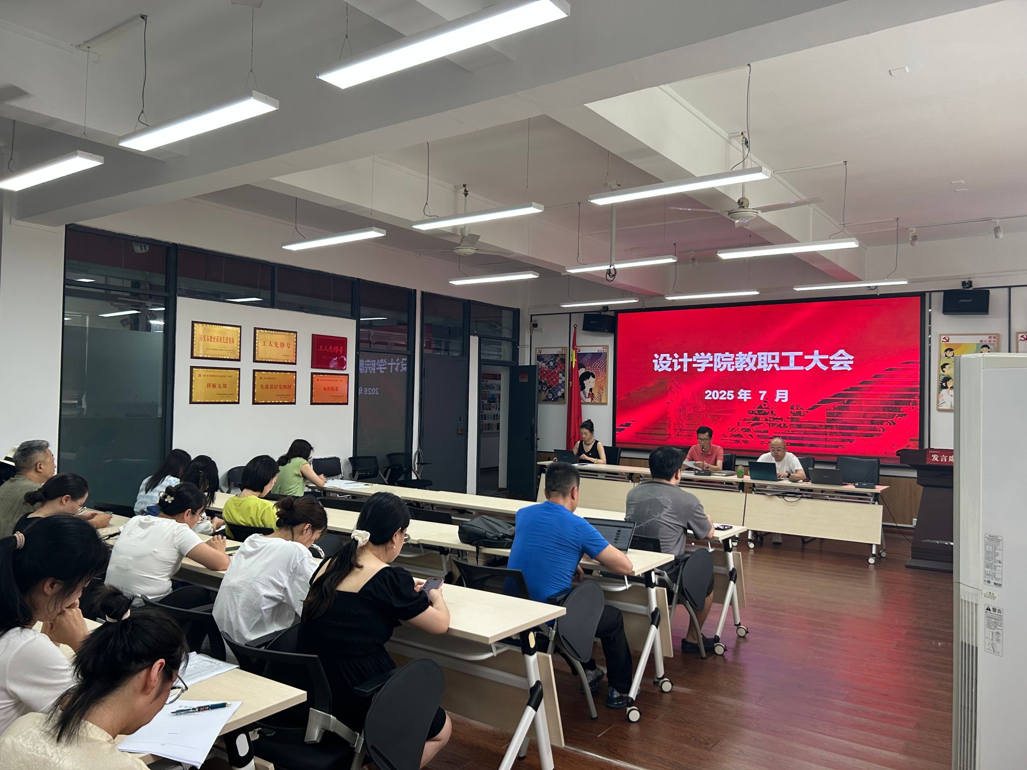 2025年6月24日下午,设计学院2025届毕业生毕业典礼于虎溪校区多功能厅隆重举行。 党委常委、副院长王朝刚,设计学院党政领导陈勇、吕曦、杨红、蒋金辰、骆玉平出席。典礼由杨红主持。 典礼在庄严的中华人民共和国国歌声中拉开帷幕,全体师生肃立齐唱。 随后播放的视频回顾了学子们四年的成长足迹,并承载了老师们深情的祝福。 吕曦作2025届毕业生学业就业工作报告,报告肯定了毕业生们在学术研究、...