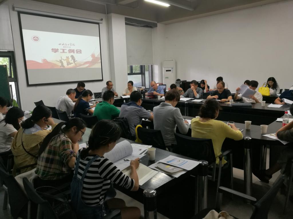 会上,各院系对新学期伊始的学生思想动态、心理状况、校园环境改造等情况作了汇报。学生处、团委对开学迎新工作、新修订学生管理制度的学习贯彻工作、奖学金评定工作、辅导员寝室值班、就业创业工作做了部署和安排。