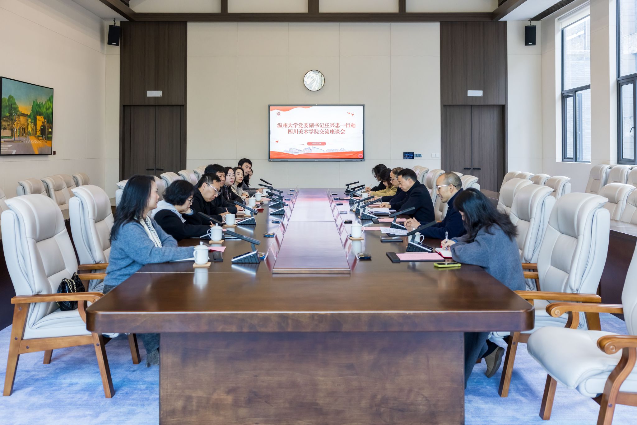 座谈会上,肖应红详细介绍了我校的办学历史、办学理念以及学校在学科专业建设、人才培养、艺术赋能乡村振兴和城市更新等方面的工作措施和实践成果,重点介绍了我校五育融合团学方面的经验与做法。庄兴忠介绍了温州大学92年的办学历史和成就,分享了学校在省市共建、特色化与差异化发展方面的路径和成效。双方一致表示,希望进一步深化交流合作,互学互鉴,共同推动学校事业高质量发展。