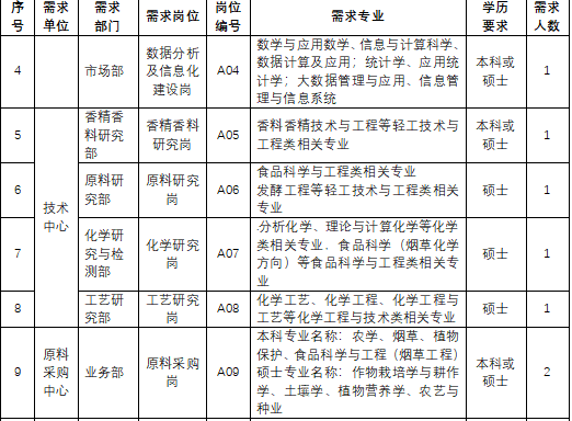 (一)需求单位、岗位、专业、学历和数量