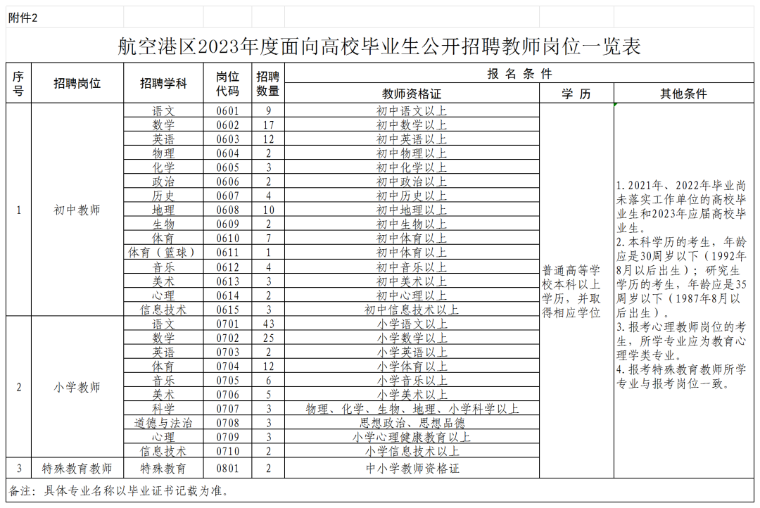 附件:1.航空港区2023年度公开招聘在职教师岗位一览表