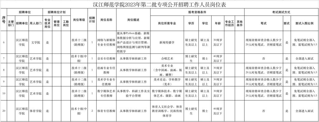 附件:汉江师范学院2023年第二批专项公开招聘工作人员岗位表.xls