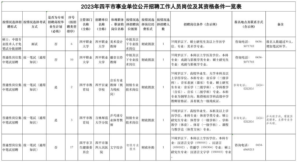 附件:1、附件1:《2023年四平市事业单位公开招聘工作人员岗位及其资格条件一览表》
