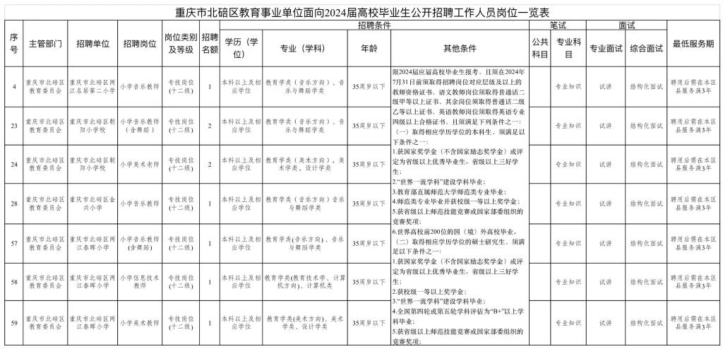 1.重庆市北碚区教育事业单位面向2024届高校毕业生公开招聘工作人员岗位一览表