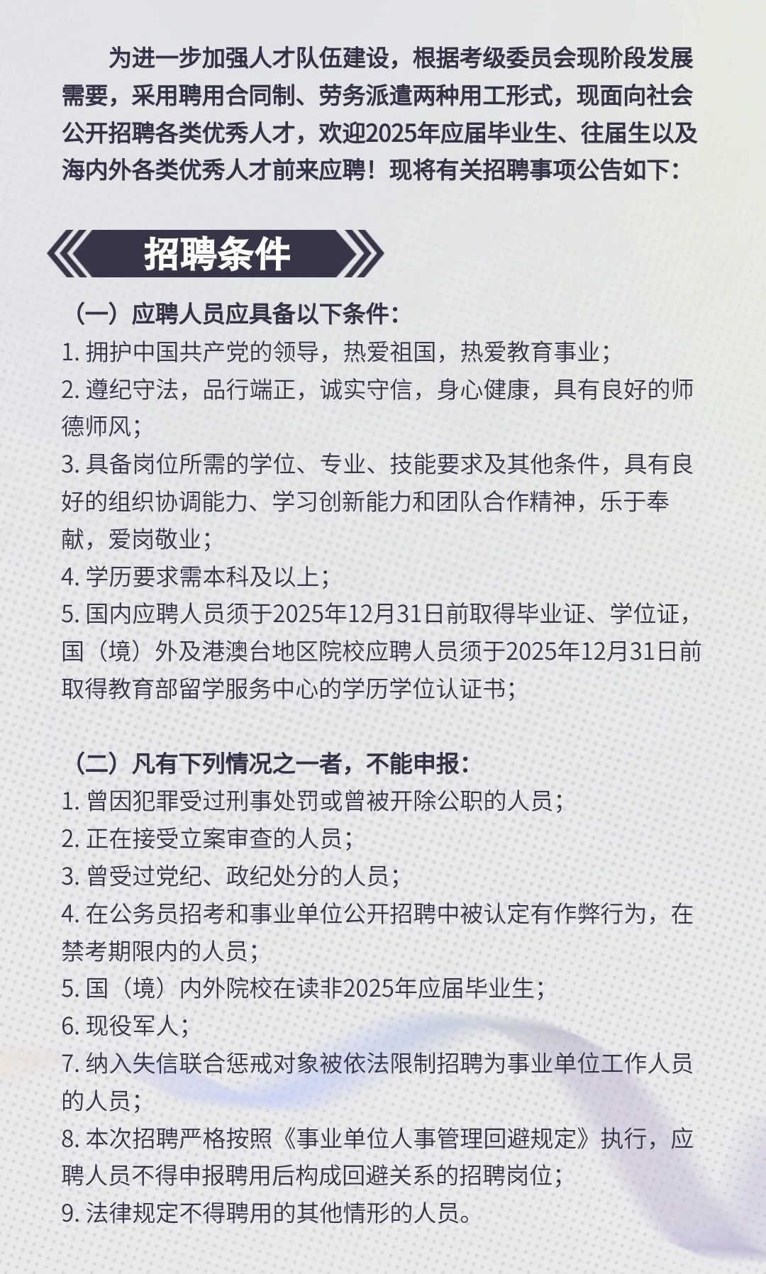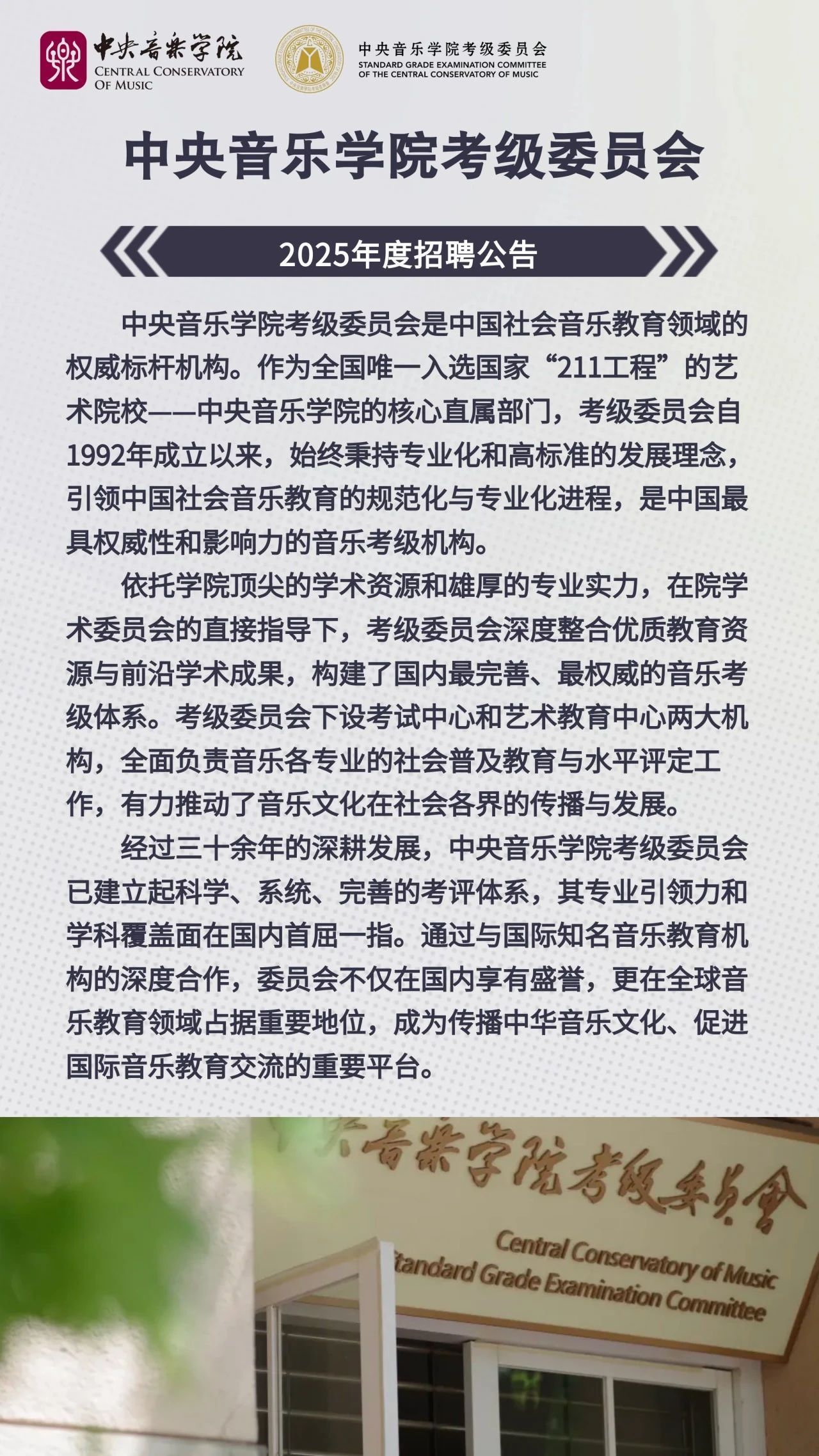 中央音乐学院考级委员会2025年度招聘公告