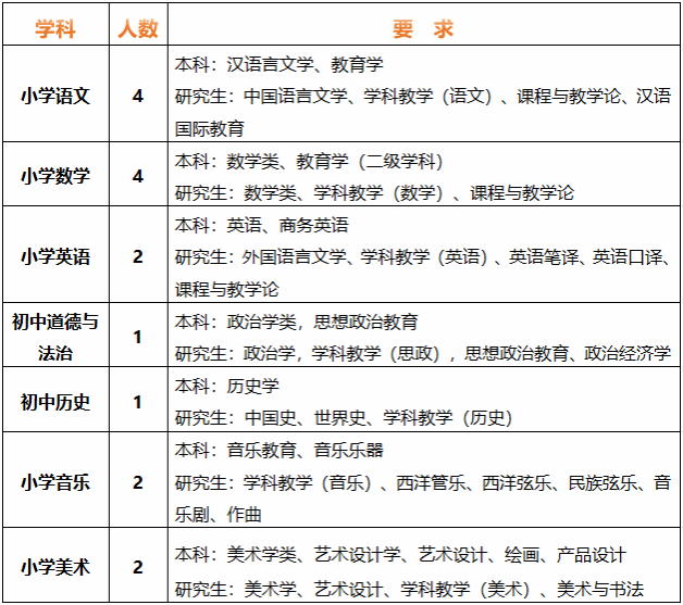 ◇具有本科及以上学历(学位),中小学相应教师资格证,普通话水平二级乙等及以上,其中小学所有学科以及中学语文教师须取得普通话二级甲等以上证书;