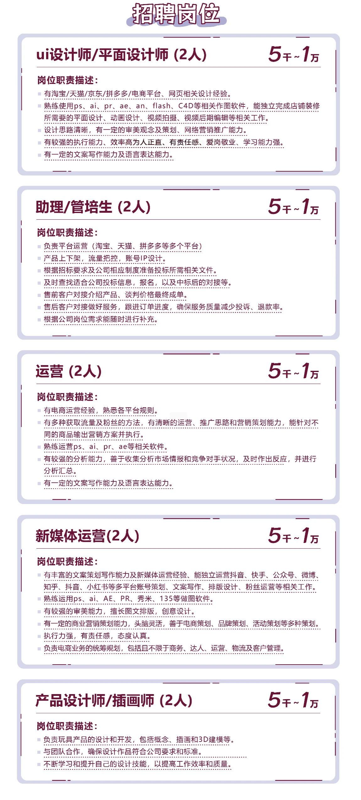 积木王国(广州)有限公司招聘UI/平面设计师、助理/管培生、运营等多个职位