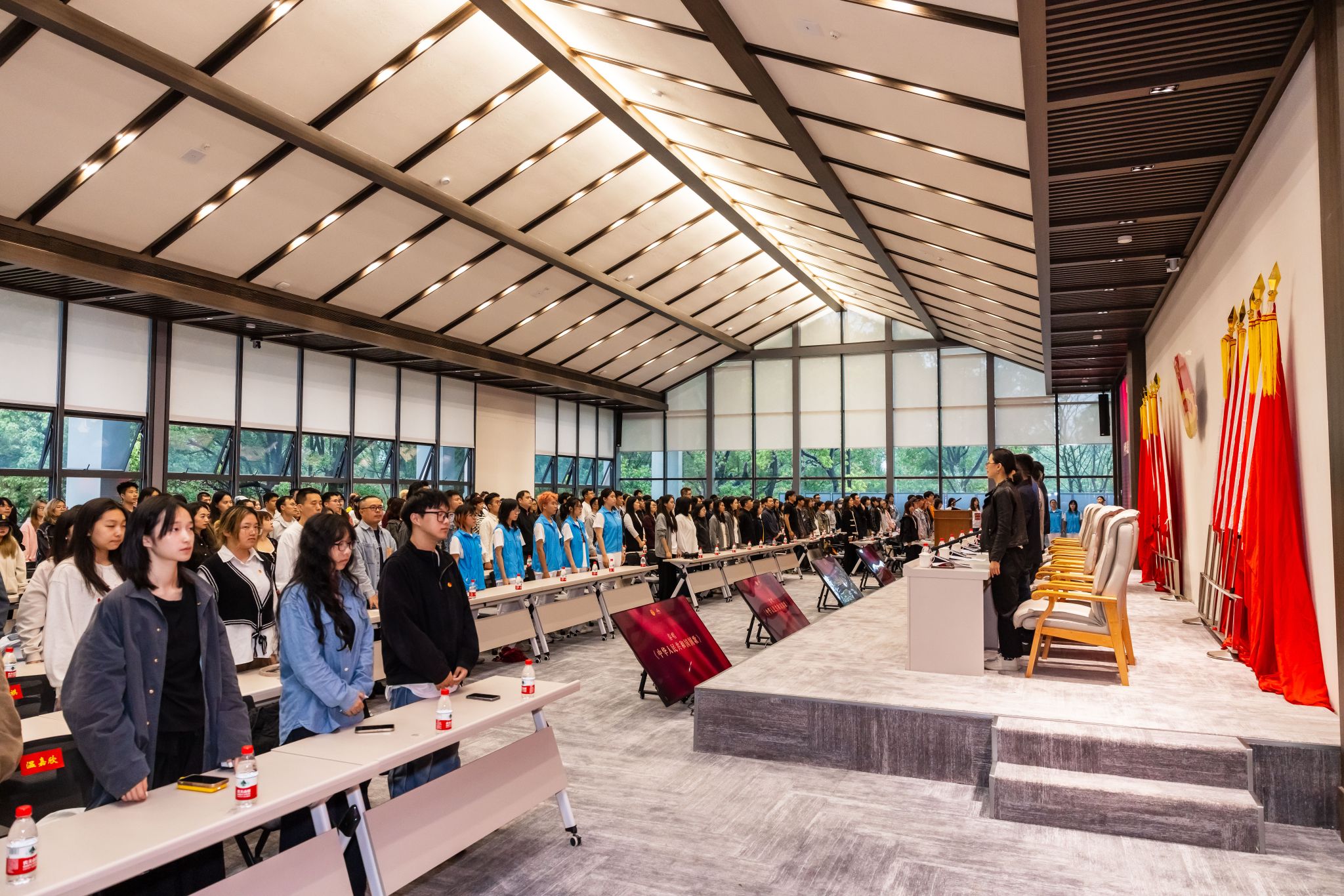 党政办公室、党委组织部、党委宣传部、党委统战部、党委学生工作部、党委研究生工作、党委教师工作部、党委武装部、教务处等部门负责人,各二级学院党委负责人、分团委书记、辅导员、团员青年代表等共计200余人参会。