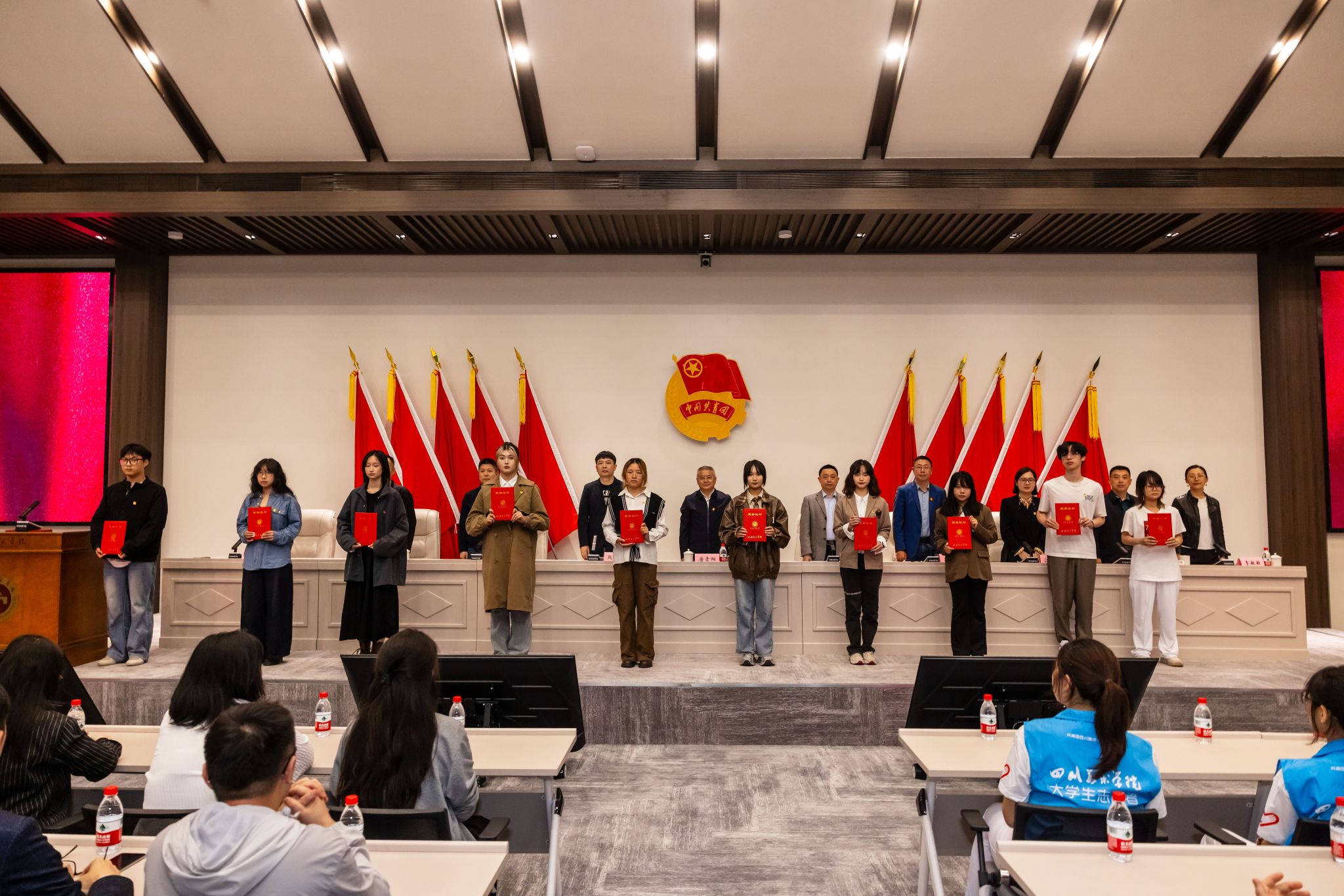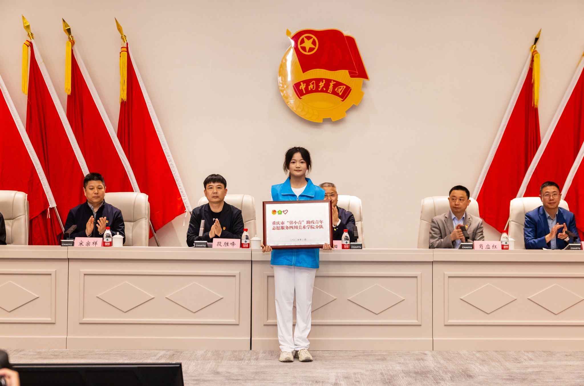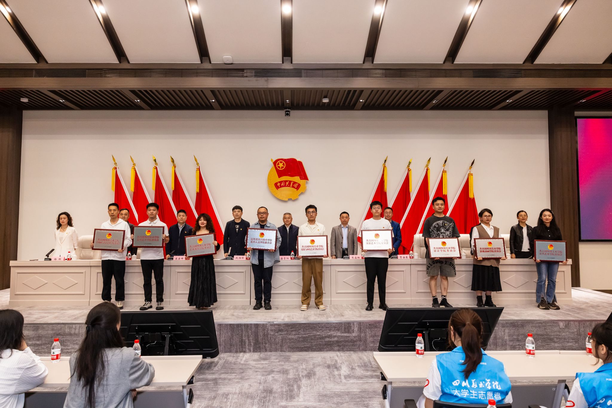 大会向分团委授牌;发布了“艺小青”志愿服务品牌;表彰了校级优秀共青团员、优秀共青团干部、五四红旗团支部、优秀志愿者名单。主席台领导为分团委书记、志愿者团队、获奖代表分别授牌、授旗和颁奖。