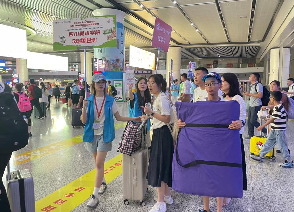 2024级新生来校报到。为迎接新生,校团委组织了一支学生志愿团队前往重庆西站提供车站接待服务。在迎新前期,校团委制定了详细的迎新接站工作方案、协调任务分配,确保新生能够安全、顺利地抵达校园。
