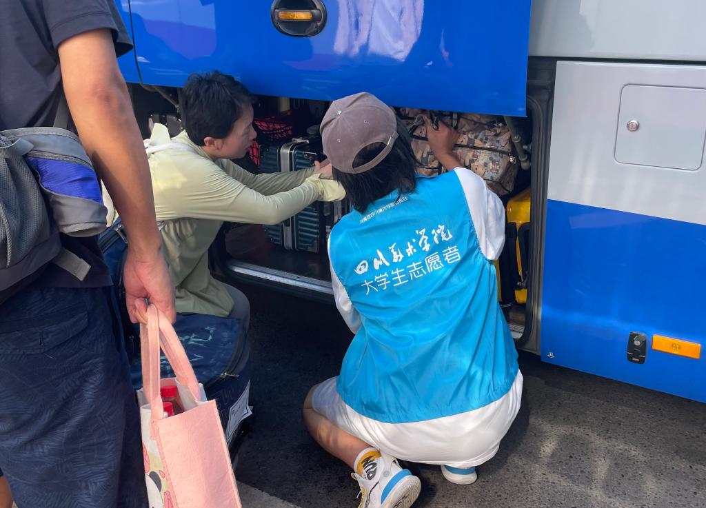 指引牌,热情迎接远道而来的新生,提供贴心接待、行李搬运、上车指引等为他们带来服务,在前往学校的大巴车上,志愿者为新生介绍学校的基本情况、报到流程以及校园生活,让新生们感受到了“第一站的温暖”。新生和家长们对志愿者的服务给予了高度评价,纷纷表示感受到了学校的热情和关怀。
