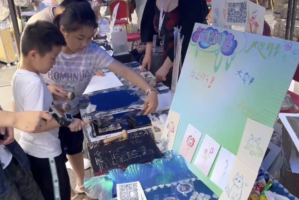 此次市集开展恰逢学校“开放的六月”毕业季,同时与“六一”儿童节不期而遇。市集售卖的商品除了让人眼前一亮的木雕木刻、手工编织、皮艺皮具、手作陶艺、书法篆刻、IP手作等原创产品外,很多商家还专门拓展了儿童互动体验项目,身体彩绘、版画制作等,为孩子们的儿童节带来一份独特的艺术创作感受。琳琅满目的商品吸引了校内师生和校外游客驻足停留、挑选购买,为期两天的活动,为商家带来30余万元收入。