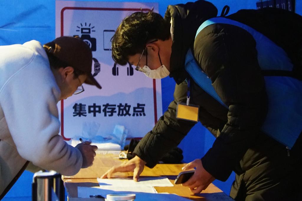 志愿服务当天,志愿者于7时20分准时到达服务地点,做好电子设备寄存前期准备,包括编号张贴、考号核对等工作。7时30分考生陆续到达寄存处,志愿者们在查看考生准考证、核对考场和座位号后,引导考生自主存放电子设备。考生考试期间,志愿者们全程驻守、确保集中物品存放安全有序。