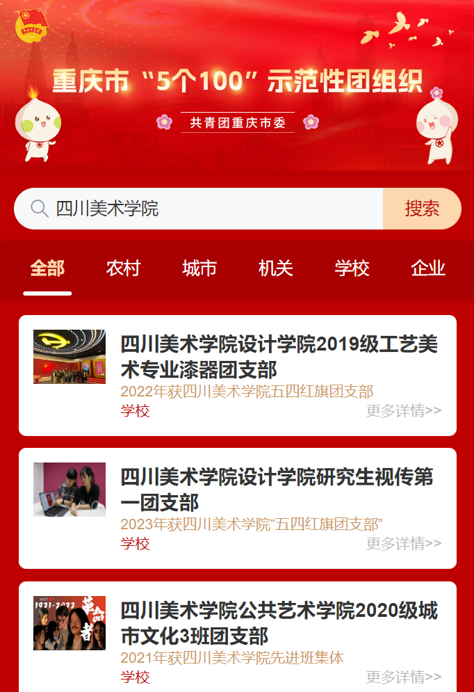 近日,共青团重庆市委在全市范围内开展了“5个100”示范性团组织培育选树行动,我校设计学院2019级工艺美术专业漆器团支部、设计学院研究生视传第一团支部、公共艺术学院2020级城市文化3班团支部3个团支部入选。