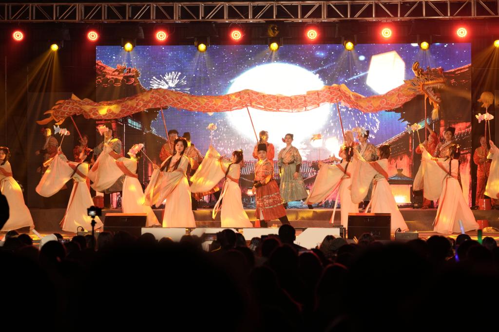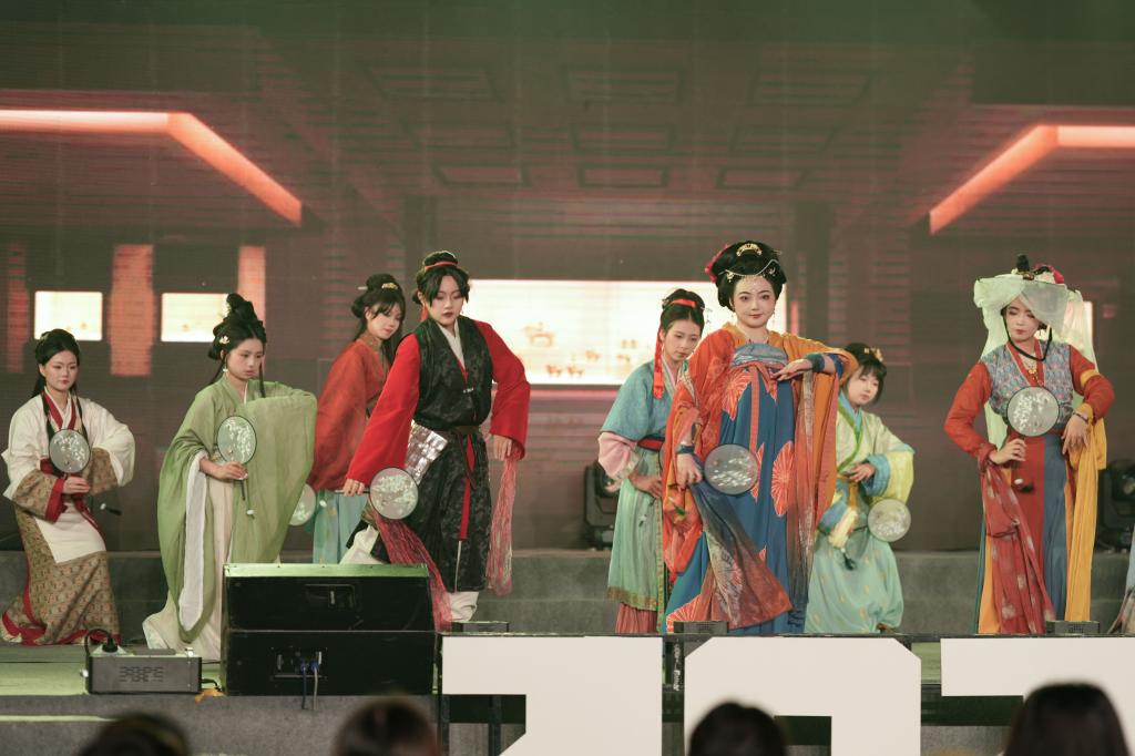 在“焕 国韵新风”篇章,来自中国画与书法艺术学院的乐队表演《不再犹豫》《青丝》点燃开场氛围;来自造型艺术学院的《元夕之约》与街舞社的《耀》以灵动的国风舞蹈展现了我校学生的蓬勃朝气与青春风采;艺术人文学院带来的情景剧《博物馆奇妙夜》以独特的创意,引领观众走进了一个幻想世界;影视动画学院带来的《山河图》以充满力量与美感的集体舞蹈向观众们展现了一幅生动的山水画卷;公共艺术学院的集体舞蹈《流光叙》通过优美流畅的舞姿展现了青年学生向往未来、砥砺奋进的热忱之心。
