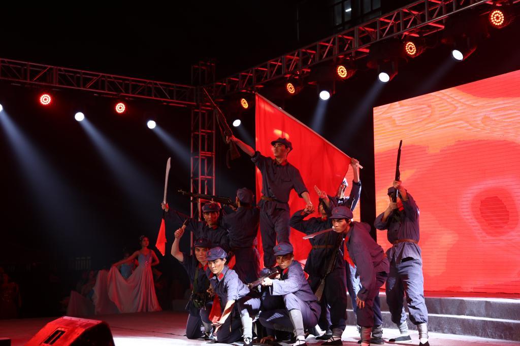 在“唤 家国礼赞”篇章,艺术团的民国主题红色音乐剧《茶馆风云》向观众重现了华夏儿女用血泪谱写的爱国诗篇;艺术教育学院通过舞蹈《画桥》将刘国枢先生的代表作《飞夺泸定桥》与现在和未来连接,激发了川美学子建功立业的决心;设计学院《我心中的红》以力量磅礴的集体舞形式表达了他们的青春主张和对党对祖国的无限热爱。
