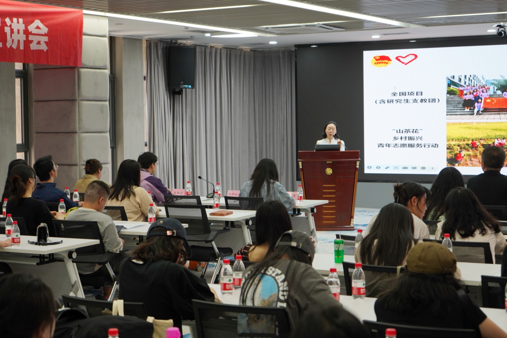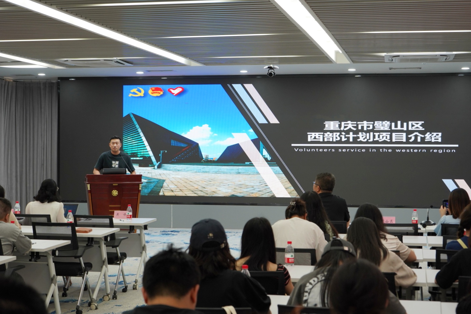 为进一步做好大学生志愿服务西部计划工作,促进毕业生全方位了解西部计划,号召更多的青年到西部区、到基层去、到祖国和人民需要的地方去,5月17日下午,我校团委组织开展了2023年大学生志愿服务西部计划专场宣讲会,校团委书记吴倩、团委全体工作人员,各学院团总支书记、辅导员参加会议,各学院团总支积极组织毕业生100余人参与此次专场宣讲会,会议由校团委副书记张坤主持。本次宣讲会邀请了沙坪坝区、九龙坡区、高新区、璧山区等4个区县项目办工作人员、优秀志愿者代表来到现场。