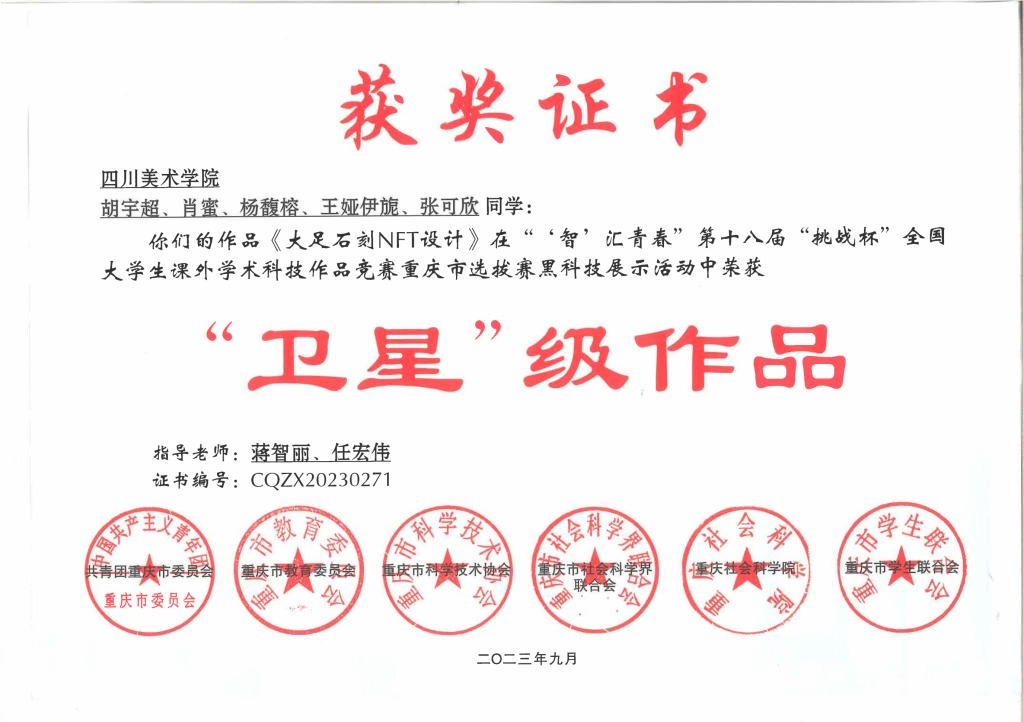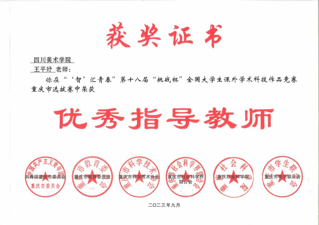 我校团委历年来高度重视“挑战杯”赛事,自今年3月份赛事启动以来,校团委积极发动、精心组织,相关职能部门密切配合,各学院指导教师和学生踊跃参与。经过学生申报、学院初评、校级评审推荐,今年我校共推报市赛参赛作品30件,其中主体赛作品15件,红色专项活动作品12件,黑科技展示活动3件。推报作品共斩获奖项20项,在主体赛道中获得特等奖1项并入围全国终审决赛、一等奖4项、二等奖5项、三等奖4项;在红色专项活动获得特等奖1项、一等奖1项、二等奖2项、三等奖1项;在黑科技展示活动中获得“卫星”级作品1项,充分展现川美师生的科创热情和青春风采,有效发挥了以赛促学、以赛育人功能。