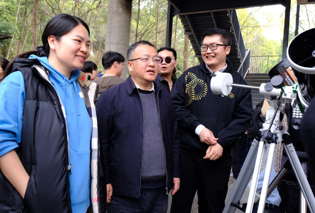 唐青阳、左益在社团招新现场与同学们亲切交流。他们现场了解学生社团的建设情况、发展规模、特色亮点、招新情况等,不时询问社团发展状况,了解社团取得的成绩,为社团发展指点迷津。