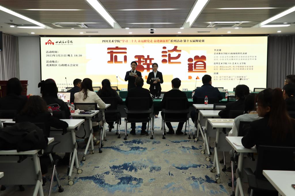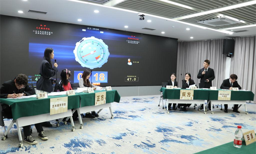在半决赛环节,艺术教育学院与校级学生组织代表团就从讨论关于“小众文化出圈对自身来说是否是坏事”的问题时体现出“各美其美,美美与共”这一思想;造型艺术学院和艺术人文学院从理想和感性两个角度中表达自身对“朋友‘emo’时给予情绪疏导更重要还是有效建议更重要”的不同看法,展现了在精神层面和生活实际两种情况下不同的交友之道;四支队伍通过激烈角逐,最后由校级学生组织代表队和艺术人文学院代表队晋级决赛,争夺冠军。