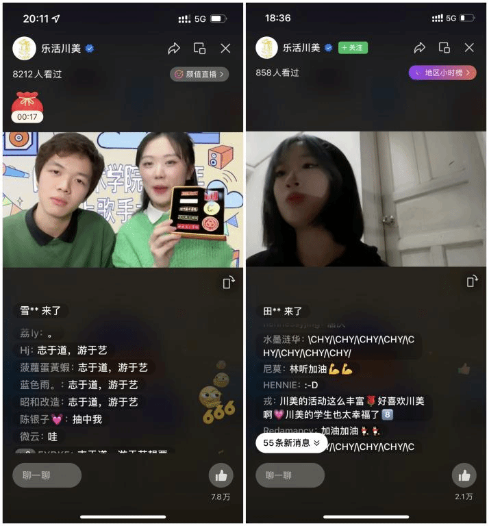 本次歌手大赛虽为线上进行,选手们却毫不懈怠、创意连连,不止发挥出了很高的演唱水平,还为直播间的观众献上了令人惊喜的表演。无论是选手在寝室、操场、楼梯间的自弹自唱,还是室友在身旁的举灯应援、热烈舞蹈,都给疫情防控期间活动轨迹相对单一的的师生带来了久违的欢乐与温暖。直播全程好评不断、互动热烈,各种有趣欢乐、鼓励满满的留言充满了直播间,工作人员精心准备的五轮抽奖互动环节更是受到了观众的喜爱,观众们的热情全程点亮着整个直播间。