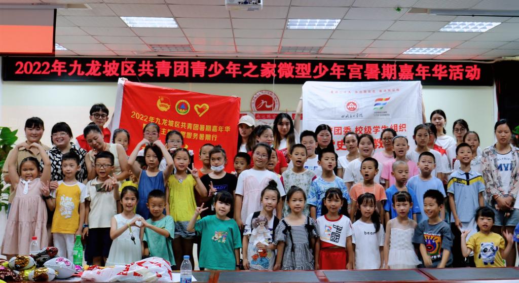 为进一步深学笃用习近平新时代中国特色社会主义思想,贯彻落实习近平总书记在庆祝中国共产主义青年团成立100周年大会上的重要讲话精神。7月7日至12日,校团委带领校学生会、艺术团、青年志愿者协会、社团师生一行10余人组成的“稚童道合绘初心”党史学习教育团,奔赴九龙坡民安华福社区开展2022年暑期“三下乡”社会实践活动,将艺术课堂搬进社区,为社区儿童带去了一系列特别的暑期艺术课。此次三下乡活动得到了重庆日报的采访与报道。