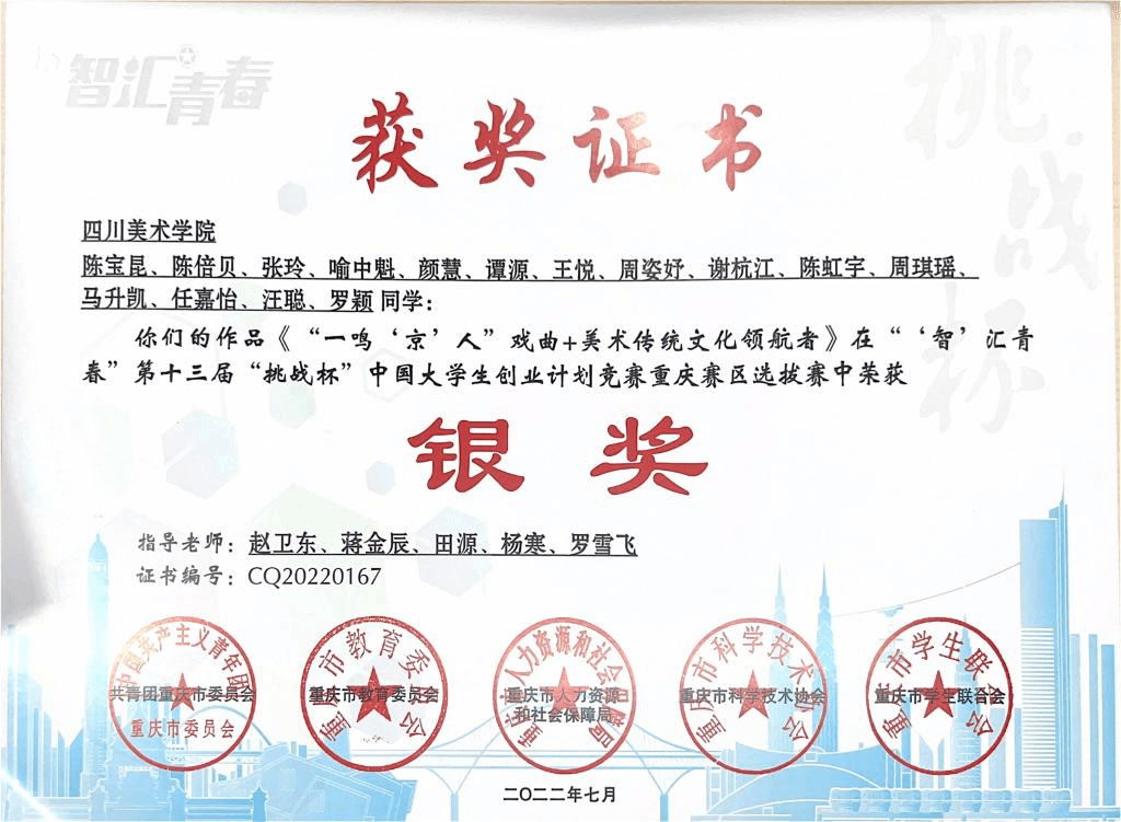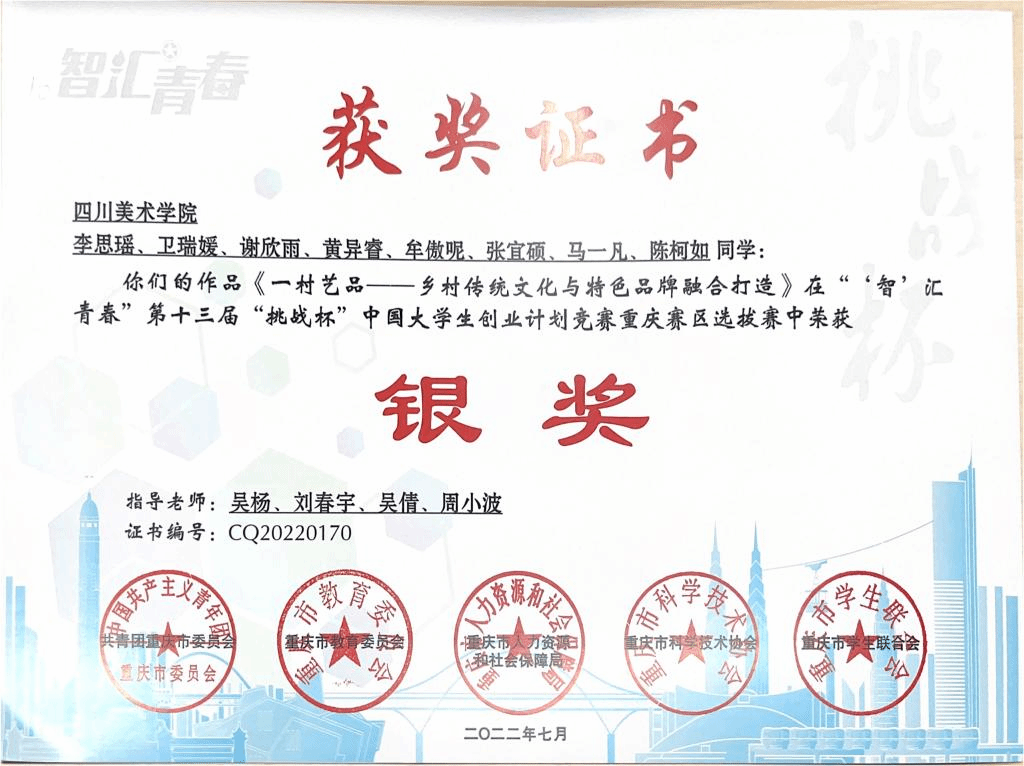 近日,共青团重庆市委发布《关于“‘智’汇青春”第十三届“挑战杯”中国大学生创业计划竞赛重庆赛区选拔赛获奖情况的通报》,我校参赛作品荣获金奖1项、银奖5项、铜奖3项,杨洋、袁曼玲、彭旭东、雷讯、魏正强5位老师获评“优秀指导教师”称号。