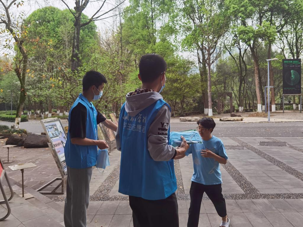 志愿者们身穿蓝马甲,挂好工作牌,佩戴着团徽,在确保做好自身防护的同时及时提醒每一位不戴口罩的同学,宣传疫情防控知识,不厌其烦地讲解戴口罩的重要性,呼吁大家提升疫情防控意识,积极做好个人防护,一丝不苟地发放口罩,确保“防护,一个都不能少”,为构建防疫安全校园提供一定的保障。