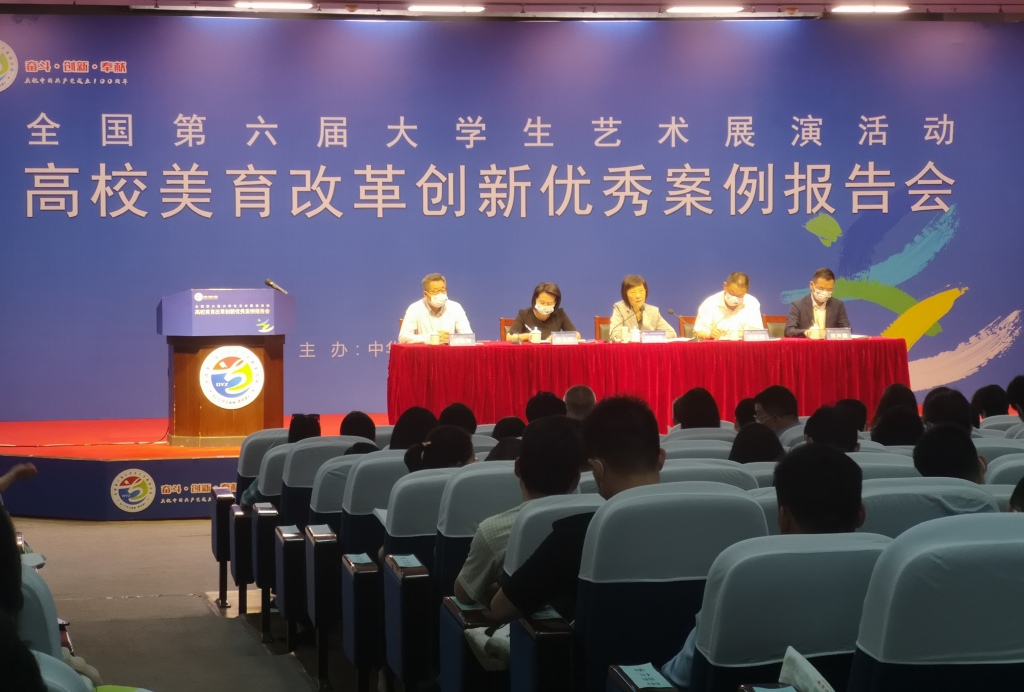 由教育部主办的全国第六届大学生艺术展演活动现场集中展演于5月6日至13日在四川省成都市举行。此次集中展演包括开幕式、闭幕式,艺术表演类节目现场展演、学生艺术实践工作坊展示、优秀艺术作品展览、美育改革创新优秀案例报告会以及学生社会实践活动和专题座谈会。5月7日至9日,我校应邀观摩了三场舞蹈表演、学生艺术实践工作坊展示、优秀艺术作品展览。由影视动画学院徐静君、周宗凯、闫国三位老师创作的高校美育改革创新优秀案例也应邀参加了第六届大学生艺术展演活动美育改革创新优秀案例报告会并作分享报告。