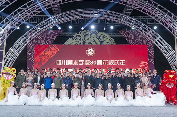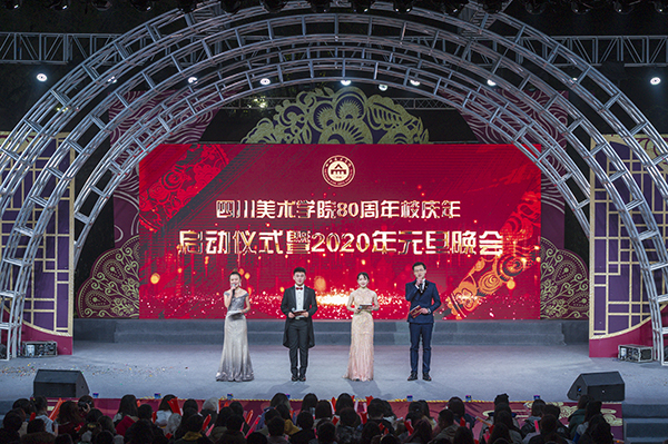 80周年校庆年启动仪式暨2020年元旦晚会在虎溪校区断桥广场隆重举行。出席启动仪式及元旦晚会的领导和嘉宾有:著名油画家、百岁老艺术家刘国枢先生,原党委书记杨圭言教授,原党委书记刘世杰教授,原副院长罗力教授,原纪委书记唐诚教授,著名油画家、油画系张方震教授,著名雕塑家、雕塑系龙德辉教授,著名版画家、重庆文史馆员康宁教授,校友代表、重庆市美术家协会秘书长魏东先生,学校党政领导黄政、庞茂琨、左益、张杰、黄云、焦兴涛、彭林权,校友代表、退休教师代表、各部门、各院系负责人和师生1200余人到场观看了启动仪式及晚会。