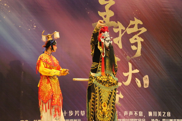 经过初赛的激烈角逐,来自各学院的十二名选手进入了决赛。决赛分为彼此唱和、声临其境、才华横溢三个环节。“彼此唱和”环节要求选手两两搭档模拟一个特定的场景主持。选手们在此环节充分展现了自己的语言天赋和主持风采,尤其是七号、八号选手搭档的体育栏目主持,振奋人心,十分出彩,赢得了评委老师和全场观众的热烈掌声。“声临其境”环节要求选手听背景音乐即兴主持,考验选手们的临场应变能力及快速组织语言的能力。选手们在短短一分钟的准备时间后便能出口成章,令人拍案叫绝。在“才华横溢”的展示环节,选手们带来了节目内容形式多样的展示,包括绕口令、报菜名、评书、小品、音乐剧、独白表演、配音等,让在座的观众意犹未尽。