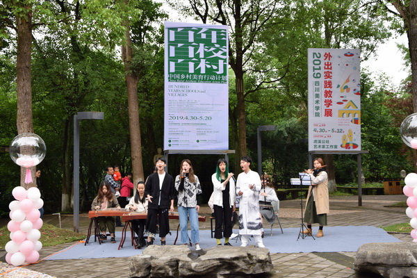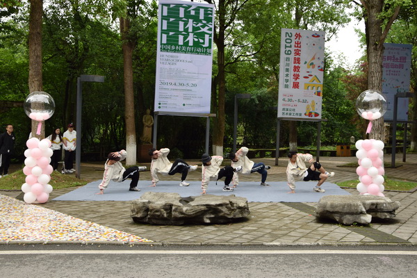 展社团风采,扬川美精神。民乐社将中国传统乐器的演奏与经典红色歌曲的演唱相结合,成为本场节目的一大亮点,她们演奏及演唱的《北京的金山上》引起了现场师生的共鸣。太极社和汉服社的表演也引发大家赞叹,感叹中华民族在悠悠历史长河中传承下来的博大精深之传统文化。瑜伽社和街舞社一静一动,让观众在不同的文化中感受到川美学子的青春与活力。节目的演出为开幕式营造了良好的艺术、文艺氛围。同时,学校各个社团都在食堂门口进行了集中展示,社团与观众的互动也在促进同学间相互交流,整个活动现场都洋溢着轻松、欢愉的气息。