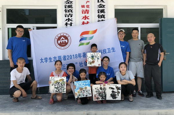 在清水村,中国画系三下乡成员在只有8名学生的清水村小学,以中华传统文化兴趣教育为目标,开展了留守儿童文化传播教育活动。探访了百年老宅,与老宅老人谈心,聊村民生活,了解该村文化历史,深入山区与山区交通不便的居民交流扶贫和文化振兴,宣传乡村文化振兴战略,并赠画予村民,弘扬中华传统文化。