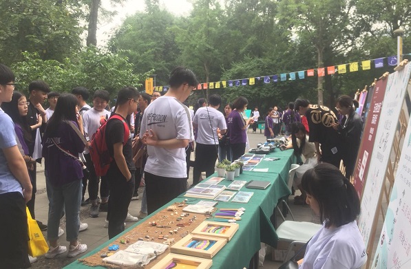 “开放的六月”——“艺往仲夏”创业市集活动。本次创意市集推出的创意产品有陶瓷工艺品、手工艺品、卡通肖像绘画以及各种装饰用品。商品类型丰富多样,创意性强。吸引了不少游客驻足观赏、咨询、购买,现场气氛十分热烈。此次活动对在校大学生创新创业以及学校的“双创”工作等方面发挥着积极的作用。